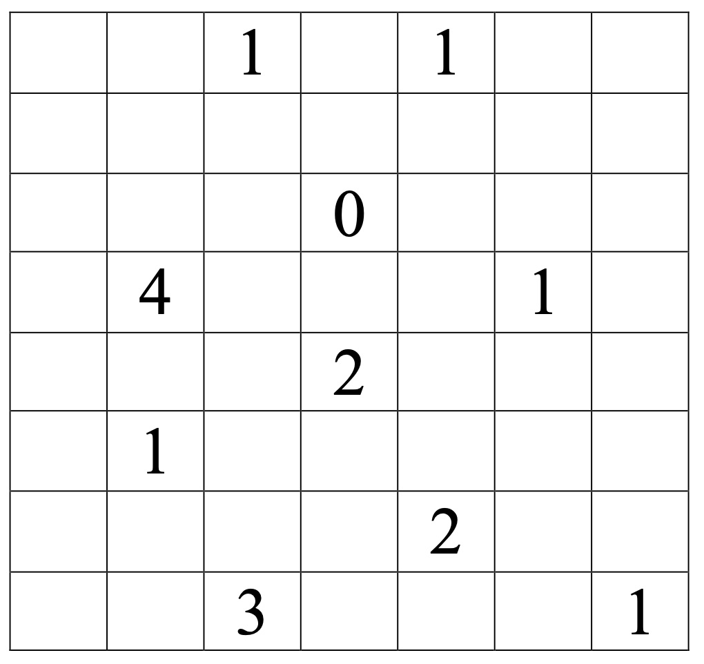 in the grid below. You must find the locations of these stars. A number tells